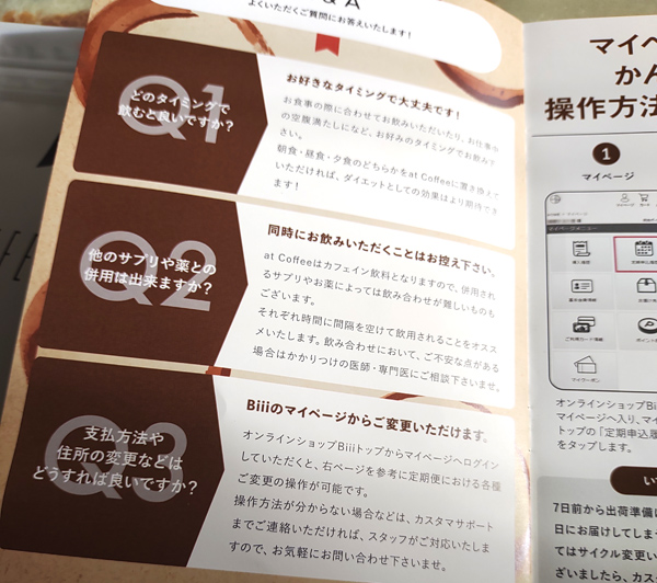 小冊子にはよくある質問も書いてあったので、とくにQ2にある同時にお飲みいただくことはお控えくださいは、しっかりと守らないと!と肝に銘じました。