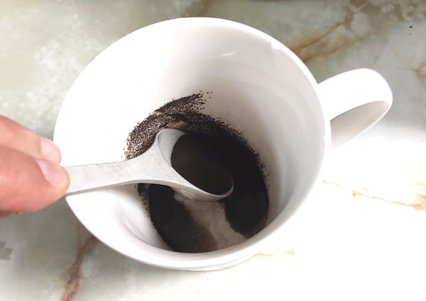 まず、付属のスプーン1杯の量のAT COFFEEをカップに入れます。