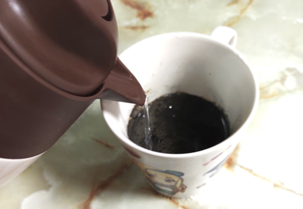 水でもよかったんですが、寒かったので温かいコーヒーにしてみました。