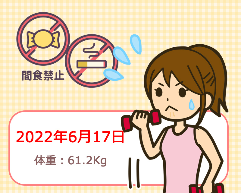 - 体重:61.2Kg(前日比:+0.2Kg)