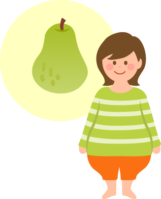 ちなみに、「リンゴ型」はお腹周りに脂肪が付きやすいのが特徴で、「洋ナシ型」は太ももやお尻など、下半身に脂肪が付きやすい人の体型を指しています。